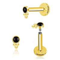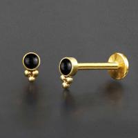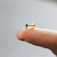A small cute PVD gold plated labret piercing with a black onyx cabochon. Great t be worn as lip piercing or in the ear as flat piercing, upper lobe piercing or tragus piercing.