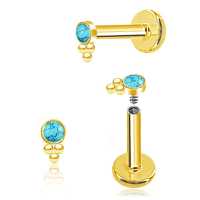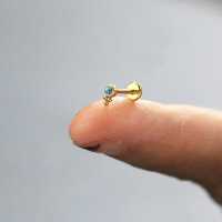 A small cute PVD gold plated labret piercing with a turquoise cabochon. Great to use as lip piercing as flat piercing, upper lobe piercing or tragus piercing in the ear.