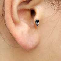 A precious tiny 316L labret piercing with a black onyx cabochon. Great to be worn as lip piercing or in the ear as flat piercing, upper lobe piercing or tragus piercing.