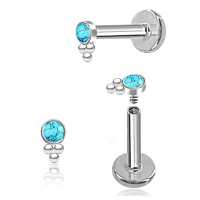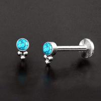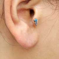 A tiny little 316L steel labret piercing with a turquoise cabochon. Great to use as lip piercing as flat piercing, upper lobe piercing or tragus piercing in the ear.
