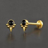 If you are hunting for some unique steel body jewelry at affordable prices look no further than Chaotic Trading's wholesale steel piercing collection. This PVD gold coated labret piercing with a black onyx cabochon is a great addition to any sellers body piercing jewelry assortment.