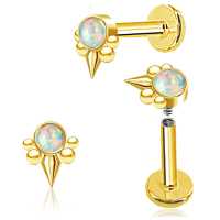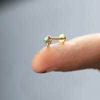 If you are searching for some unique steel body jewelry at fair pricing look no further than Chaotic Trading's wholesale steel piercing collection. This PVD gold coated labret piercing with a white synthetic opal is the ideal body piercing jewelry for any piercing seller.