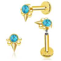 If you are hunting for some unique steel body jewelry at affordable prices Chaotic Trading's wholesale steel piercing collection is the place for you. This PVD gold coated labret piercing with a turquoise cabochon is a lovely addition to any sellers body piercing jewelry collection.