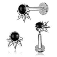 Using an innovative piercing clusters welding method our creative steel jewelry artisans have created this surgical steel piercing labret adorned with a black onyx cabochon. Sold as labret piercing but also great to wear in the ear as flat piercing or lobe piercing.