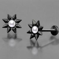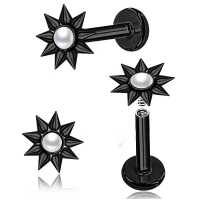 A bigger version of our punk piercing jewelry labret. This steel body jewelry has been patiently handmade by our steel jewelry workers, set with a synthetic white pearl cabochon then done with a black PVD finish. A perfect fit for labret piercing, tragus piercing or flat piercing.