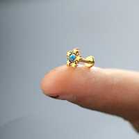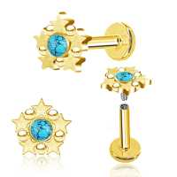 Creating new cool steel piercing jewelry such as this star studded steel piercing labret is what sets Chaotic Trading a part from the rest. This hypo allergenic labret piercing is PVD gold plated and adorned with a turquoise cabochon.