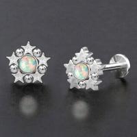 Creating new exiting steel piercing jewelry such as this star studded steel piercing labret is what sets Chaotic Trading a part. This labret piercing is welded by hand and set with a synthetic white opal.