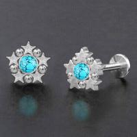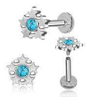 Creating new cool steel piercing jewelry such as this star studded steel piercing labret is what makes Chaotic Trading the company we are today. This hypo allergenic labret piercing is truly a work of art set with a turquoise cabochon.