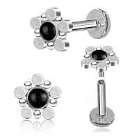 A 316L surgical steel labret piercing that is designed to have a new clean minimalist look. This steel labret has been produced by welding tiny steel piercing discs and balls together then set with a black onyx cabochon. Awesome wholesale steel body jewelry fairly priced!