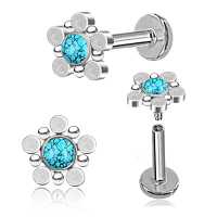 We are very exited to present our 316L labret piercing with a very fresh new look. This steel labret has been produced by hand-welding small steel piercing discs and balls together before being set with a turquoise cabochon. Exclusive wholesale steel body jewelry at great prices!