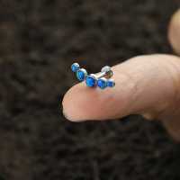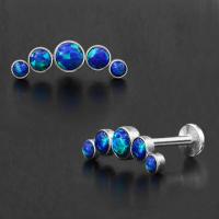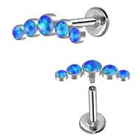 A simple clean helix piercing and flat piercing design with five synthetic blue opals. This high polished steel labret is a perfect example of what type of steel piercing jewelry you can expect to find in our exclusive wholesale steel body jewelry collection.