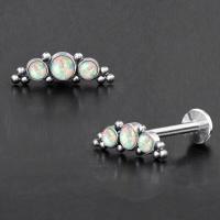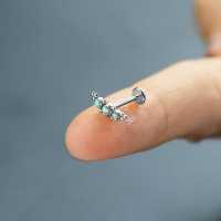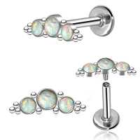 A posh looking 316L steel labret designed to be worn in the upper ear as a helix piercing or a flat piercing. This version is decorated with synthetic white opals, we also offer this labret piercing in more stone selection in our huge wholesale steel body jewelry collection.