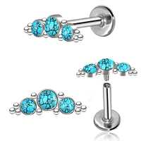 A very posh surgical steel labret recommended to be used in the upper ear as helix piercing or flat piercing. This is the turquoise colour option but we also offer this labret piercing in more color variations in our huge wholesale steel body jewelry collection.