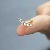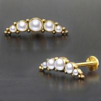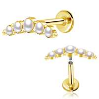 Here is our top of the line PVD gold plated steel piercing labret that we produce by welding 5 steel cups with white pearl cabochons together then decorate with tiny steel piercing balls. Designed to be used in the upper ear as flat piercing or helix piercing.