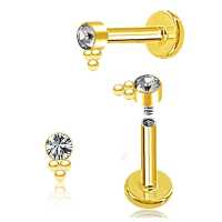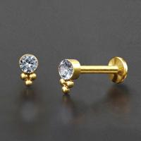 A cute little hand-welded cluster piercing labret, using a 2mm cup with a bezel set clear zirconia crystal. This steel body piercing is ideal to be used as a flat piercing, tragus piercing as well as helix piercing.