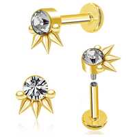 This stunning gold plated spiky steel body piercing jewelry design is gorgeous to wear as a labret piercing, flat piercing as well as lip piercing jewelry. Discover this and many more steel body jewelry designs in our wholesale steel piercing collection at affordable prices.