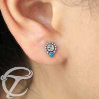 A different looking crystal labret piercing design that we have welded with a synthetic opal and decorative steel balls. This and may more exclusive labret piercing jewelry options is ready to be in stock in our wholesale body jewelry online shop.
