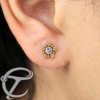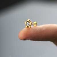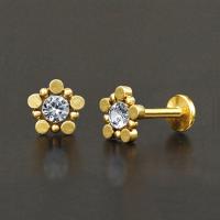 This unortodox steel labret looks a little bit like a daisy flower with steel petals welded to the crystal labret piercing centre piece. Only available at Chaotic Trading's wholesale steel piercing jewelry web shop.