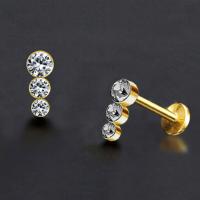 A perfectly hand welded row of crystals in decreasing sizes make up this simple clean crystal labret piercing. Here is the PVD gold plated steel labret version but we also have this available in more colours and stone options in our large wholesale steel piercing selection.