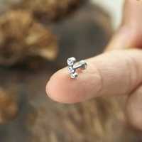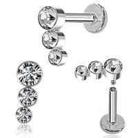 Another cool crystal piercing labret model with three crystals hand-welded together at an angle. These steel labrets are sold in both left and right options so that that they can be worn as matching pairs as helix piercing, flat piercing and also as lip piercing.