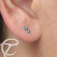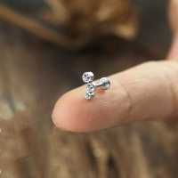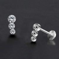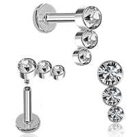 Another simple crystal piercing labret model with three crystals welded together at a slight angle. These steel labrets are sold in both left and right options so that that they can be worn as matching pairs as helix piercing, flat piercing and also as lip piercing.