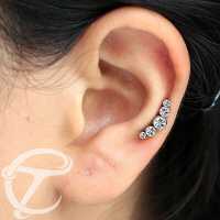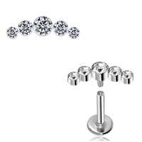 A quite large crystal steel labret that looks great to use as a flat piercing or helix piercing. Five crystals in various sizes welded together using our cluster piercing method to create our excellent steel body jewelry.