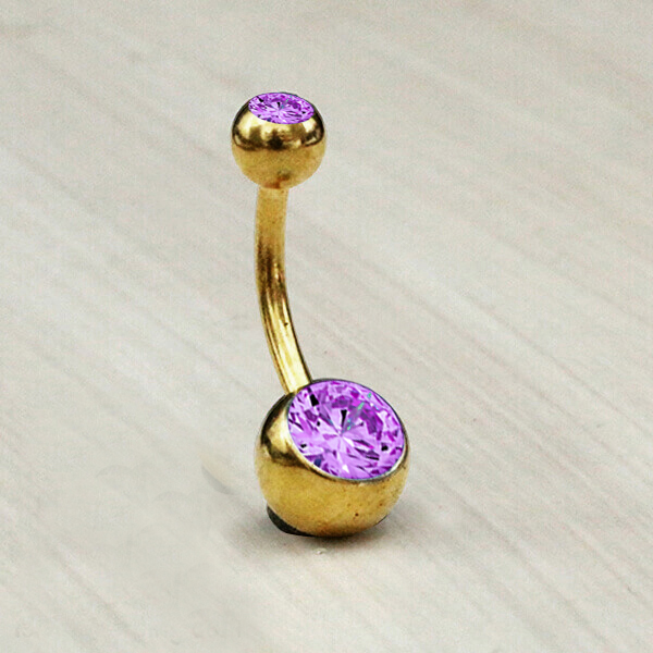 Description: 316L Steel navel bar , Purple Crystal