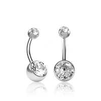 Steel Piercing XN 001X CZ - 316L Steel navel bar , Clear Crystal is sold