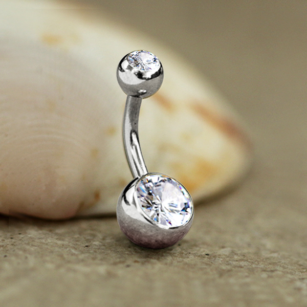 Description: 316L Steel navel bar , Clear Crystal