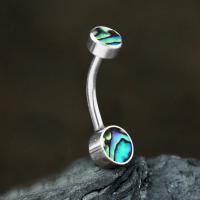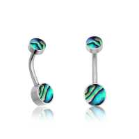 A basic 316L steel belly piercing with a steel navel bar set with two hand cut abalone shell cabochons. Browse through our complete wholesale steel body jewelry collection for more exclusive steel piercing jewelry.