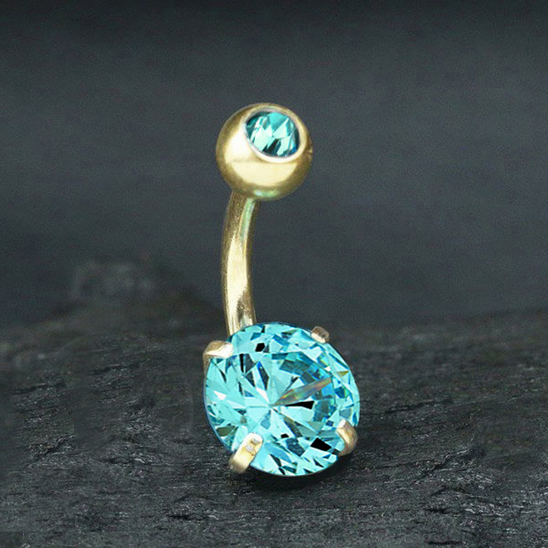 Steel Piercing XN 003G AQ - 316L Steel navel bar, Aqua Crystal is sold