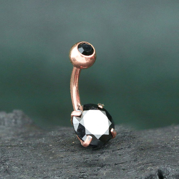 Description: 316L Steel navel bar, Black Crystal