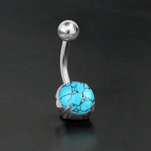 Description: Steel navel bar with Prong set Stone