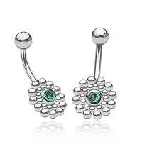 A intricate geometric inspired steel navel bar with an abalone shell inlay, professionally hand welded by our talented artisans using a steel piercing cluster process. These steel banana bars are available in turquoise as well black resin inlay in our wholesale steel body piercing jewelry assortment.