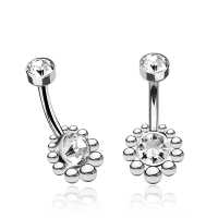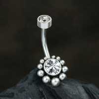 This is a hand welded steel navel bar with zirconia crystal, carefully hand welded by our artisans using our cluster piercing jewelry technique. We offer a huge assortment of hypo allergenic steel body jewelry in our excellent wholesale piercing jewelry collection.