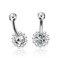All of our steel navel bars are methodically hand-made with the highest quality materials using a cluster piercing welding system. Our hypoallergenic, stainless steel piercing wholesale collection is suitable for those sensitive to nickel or allergies. This piercing navel bar comes with bezel set zirconia crystal.