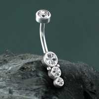Hypoallergenic navel bars are a staple of any steel body piercing arsenal and this one is no exception. Crafted from 316 steel navel bars with bezel set clear zirconia crystals, our hand-welded piercing jewelry features the cluster jewelry technique and you will find lots of choices in our wholesale body jewelry collection!