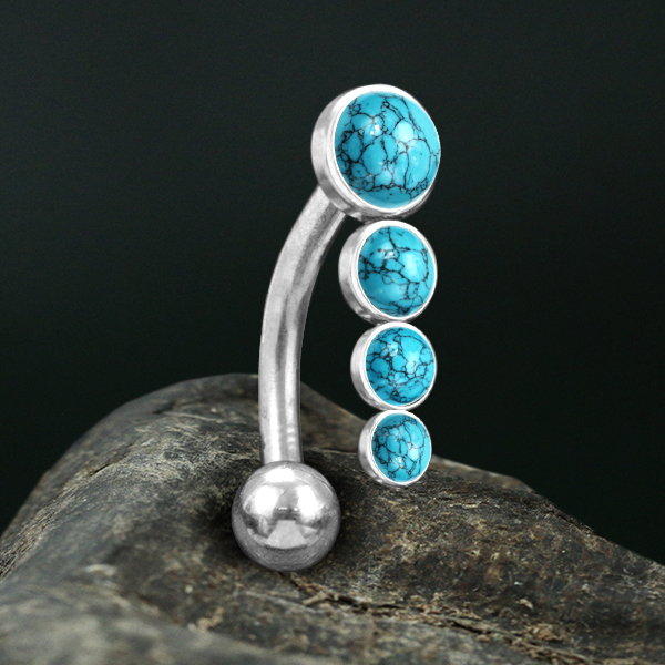 Description: 316L Steel navel bar with Turquoise
