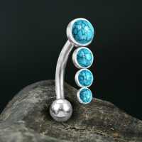 Steel Piercing XN 150X TQ - 316L Steel navel bar with Turquoise is sold