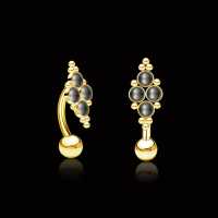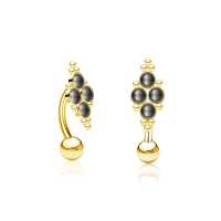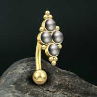 A PVD gold plated steel navel bar set with synthetic black pearls available in our wholesale steel piercing collection. This is part of our hand made navel jewelry that is all made in our steel piercing workshop.