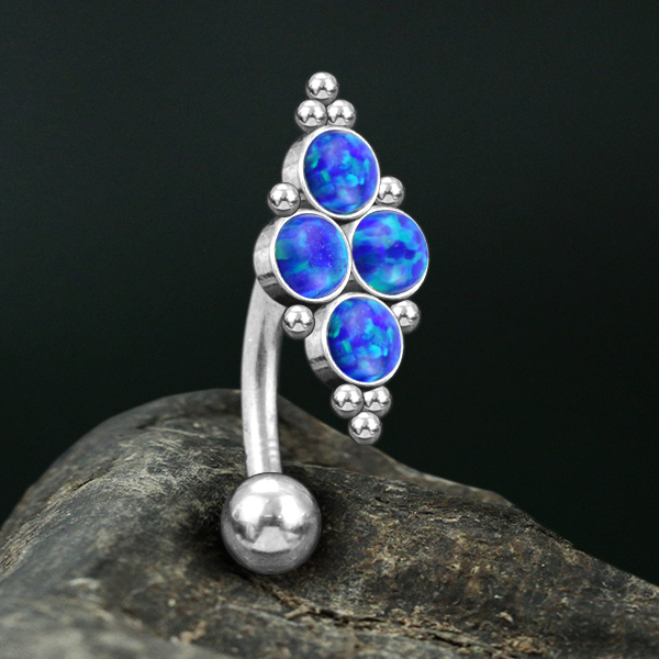 Steel Piercing XN 151X OB - 316L Steel navel bar with Blue Opal is sold
