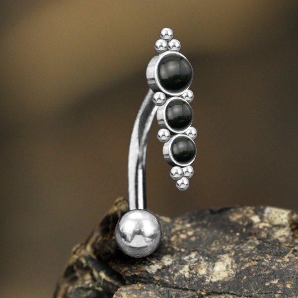 Description: 316L Steel navel bar with Black Onyx