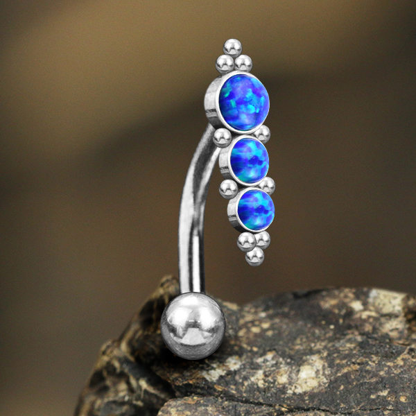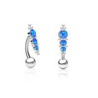 Description: 316L Steel navel bar with Blue Opal