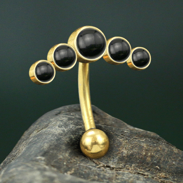 Description: 316L Steel navel bar with Black Onyx