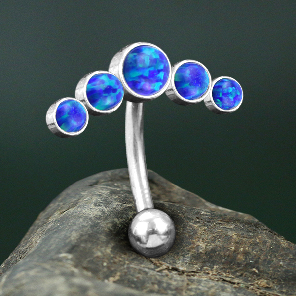 Description: 316L Steel navel bar with Blue Opal