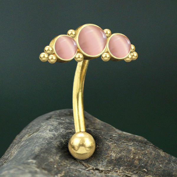Description: 316L Steel navel bar with Rose Cat Eye