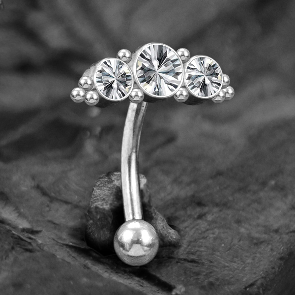Steel Piercing XN 154X CZ - 316L Steel navel bar with Clear Zirconia is sold