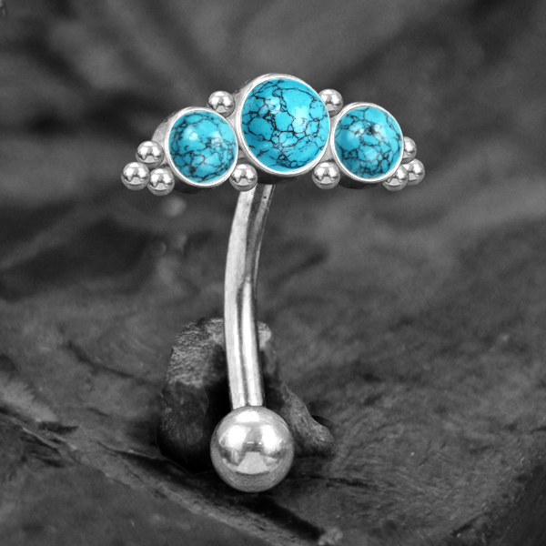 Steel Piercing XN 154X TQ - 316L Steel navel bar with Turquoise is sold