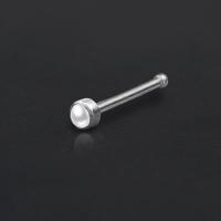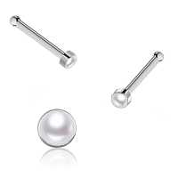 A 316L steel nose pin set with a synthetic white pearl. A example of a basic nose stud from our wide assortment of nose bones and nose jewelry from our massive wholesale steel piercing assortment.