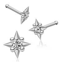 Our Northern star nose pin is a very cool nose piercing jewelry design. This elegant nose stud is being carefully crafted in our steel body jewelry smithy by welding together high quality surgical steel piercing jewelry parts into this stunning nose bone.